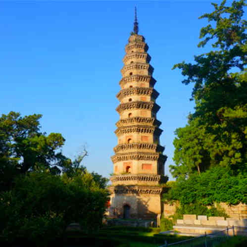 辟支塔 始建于宋淳化五年(994年),竣工于嘉祐二年(1057年),历时63年完工。“辟支”出于佛教,音译为“辟支迦佛陀”,略称“辟支佛”,辟支塔,意即辟支佛塔。辟支塔为一座八角九层楼阁式砖塔,塔高55.7米,塔基为石筑八角,上有浮雕,镌刻有古印度孔雀王朝阿育王皈依佛门等故事。
