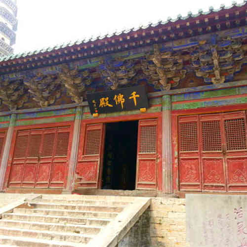 因殿内供置众多佛像得名。依山建于高大的台基之上,其面阔七间,进深四间,单檐庑殿顶,举折平缓,出檐深远。檐下置疏朗宏大的斗拱,木棱彩绘华丽,檐角长伸高耸,有展翅欲飞之势。 前檐下立有八根石柱,柱础皆雕刻有龙、凤、花、叶、水波及莲瓣、宝装荷花等纹样,雕工精美,凸显唐宋之风。