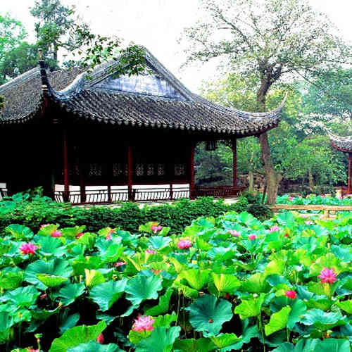 芙蓉榭,拙政园东部一方形歇山顶临水建筑,位于主厅兰雪堂之北,大荷花池尽东头。荷池约略为矩形,东西长,南北窄,故西向的小榭前有很深远的水景,水中植荷,荷又名芙蓉,小榭之名由此而来。如今,芙蓉榭已成为东部很有特色的风景,尤其是夏天夜晚,皓月当空,明月、清风、月影、荷香齐至,能给观赏者带来美不胜收之感。