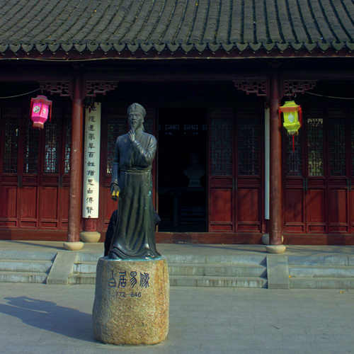 苏州为纪念唐代大诗人白居易修筑七里山塘,清嘉庆年间就建有唐少傅白公祠,后毁于太平天国年间。此处作为走进山塘的第一个景点,2006年重修,将白居易在山塘、苏州的生活场景以石雕连环画的形式表现出来。