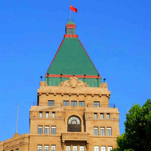 沙逊大厦是英资新沙逊洋行下属的华懋地产股份有限公司投资240万元,在上海外滩20号兴建的一幢10层大楼(局部13层),总高77米,是外滩最高的建筑物,建筑面积36317平方米。1872年,英籍犹太人伊利亚斯·沙逊在孟买成立新沙逊洋行。1877年来上海设立分行,买下外滩20号美商琼记洋行的房地产(11亩7分)。
