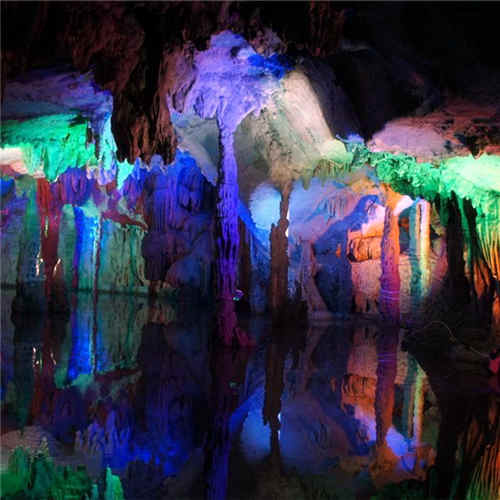 七星岩以雄伟、宽广、曲折、深邃著称,是石灰岩发育较完全,景物较丰富,保护较完好的地下宫殿。洞内石乳、石笋、石柱、石幔、石花,变幻莫测,玄妙无穷,组成一幅幅绚丽的图景。
