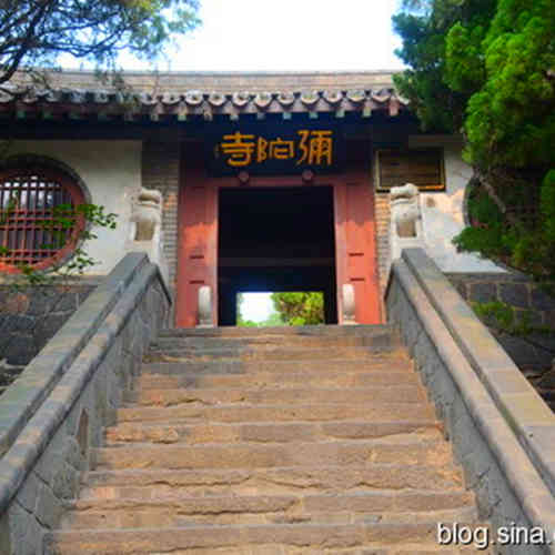 弥陀寺始建于唐代,是蓬莱阁景区内唯一的佛教寺庙。明万历十一年,佛教名僧憨山德清来鲁传教。蓬莱阁内的弥陀寺香火复盛。弥陀是号称西方三圣之一阿弥陀佛的简称,弥陀寺是供奉阿弥陀佛的寺庙。