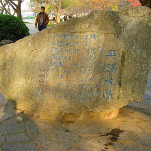 无锡旅情这块碑是1990年初设的一个景点,正面刻有“无锡充满温情和水”几个字,这是无锡对外宣传的旅游口号。“温情”是指无锡人温文尔雅,待人热情;“水”是指无锡的旅游资源以水为主,以水出名,突出水乡风情。