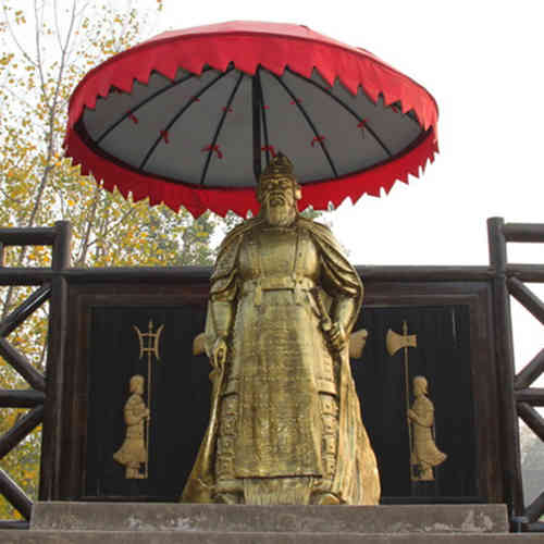 曹操点将台两侧,战鼓矗立,依稀可见一代枭雄曹公当年的威仪。站在三层高的点将台上,极目远眺,水寨风光尽收眼底。陆地上的楼台堂榭与湖上的望江敌楼相峙对望,让人惊叹设计者的独具匠心和建造者的巧夺天工。