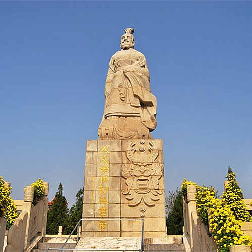 轩辕黄帝塑像系花岗岩雕塑而成,高达18米,生动展现了黄帝的神圣庄严与崇高。塑像底座上,"人文始祖轩辕黄帝"八个大字由全国人大副委员长楚图南先生书写。