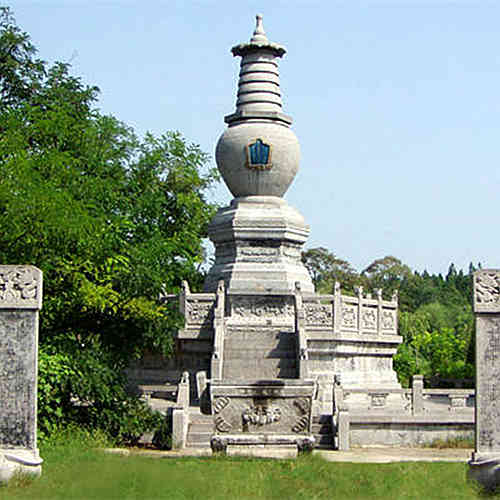 净严法师曾任河南佛教协会会长,他於一九九一年二月二日在郑州圆寂。净严法师的灵骨被分别安置在开封铁塔公园和山西五台山上。这座覆钵式塔是现代塔,坐落在台基上,塔前有碑刻两座,在前有石狮看守。