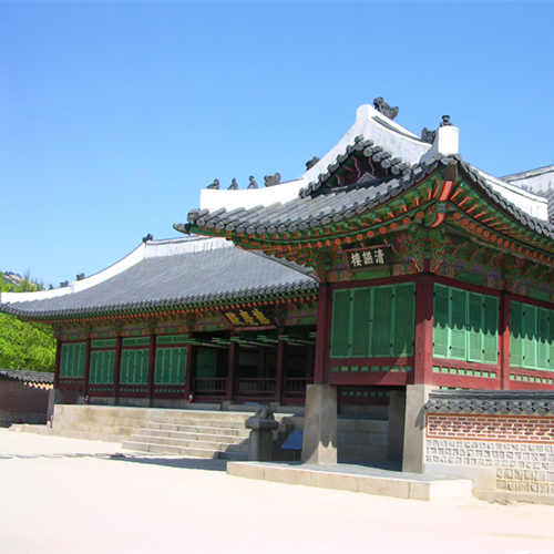 慈庆殿建于1867年,在重建景福宫时,为赵大妃(神贞王后)而建。正面10间,侧面4间,东有清燕楼,西有协庆堂,相互连接。1874年发生爆炸而被毁,重建于1888年。慈庆殿后边有红砖墙壁叫做“十长生烟筒”,十分有名,墙上雕刻“十长生”,墙顶冠上10个屋状烟囱盖,以便排烟,算得上是朝鲜时代最漂亮的烟囱,现被指定为珍贵文物第810号。